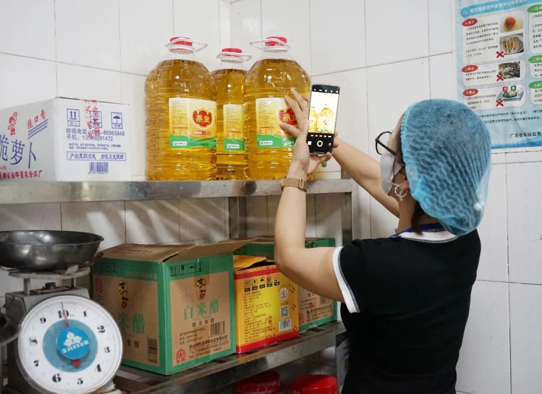在学校监控室内,监控视频实时显示着后厨的各个角落以及洗菜、炒菜、分装等环节,这些画面将同步传输至“邑食安”阳光餐饮平台。为了让家长更好地参与监督,学校将家长代表纳入“互联网+明厨亮灶”开放管理人员。家长只需轻点手机APP,便能随时查看食材处理、烹饪制作等全流程。学校每周还开展线上检查,发现问题及时督促整改。