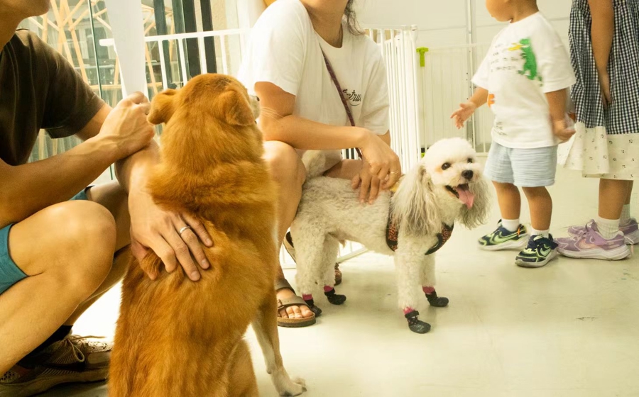 前同事们为Elisa送上了鲜花,外籍老客们也带上自家的毛孩子前来捧场。他们拉拉家常,就像朋友一样,小狗们则亲昵地穿梭其中,而这正是Elisa想要做的——让宠物和人们像家人一样相处。